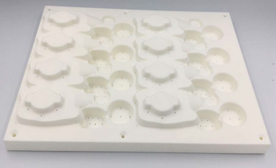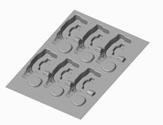 Below we can two examples. On the right hand image we can see the SLS based vacuum forming tool generated from the 3D Locator STL geometry. On the right hand side the corresponding vacuum formed plate is dispalyed.